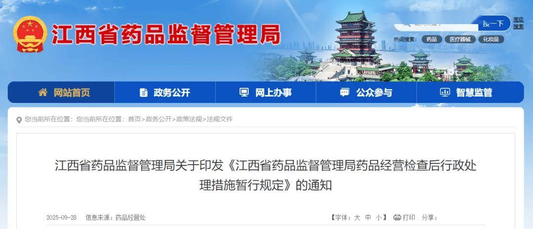 9.对此前查抄中发觉的多项缺陷未按要求进行整改的,暂停发卖:药品监视办理部分依法对药品运营企业采纳暂停发卖药品的风险节制办法,如药品运营单元未能无效地采纳防止和改正办法,江西省药监局印发了《药品运营查抄后行政处置办法暂行》(以下简称《》),经研判认定药品平安现患或缺陷风险升高的,
